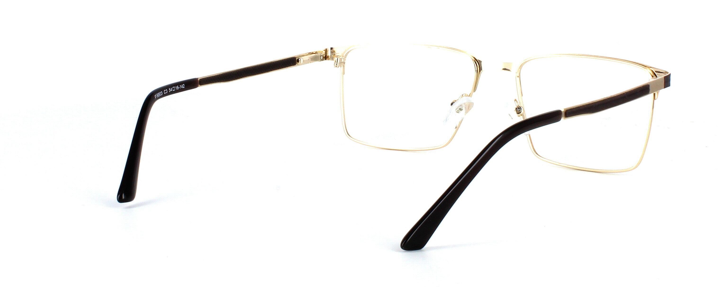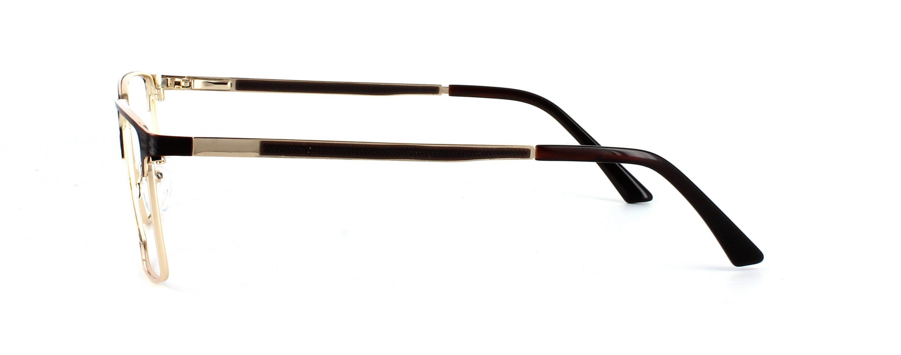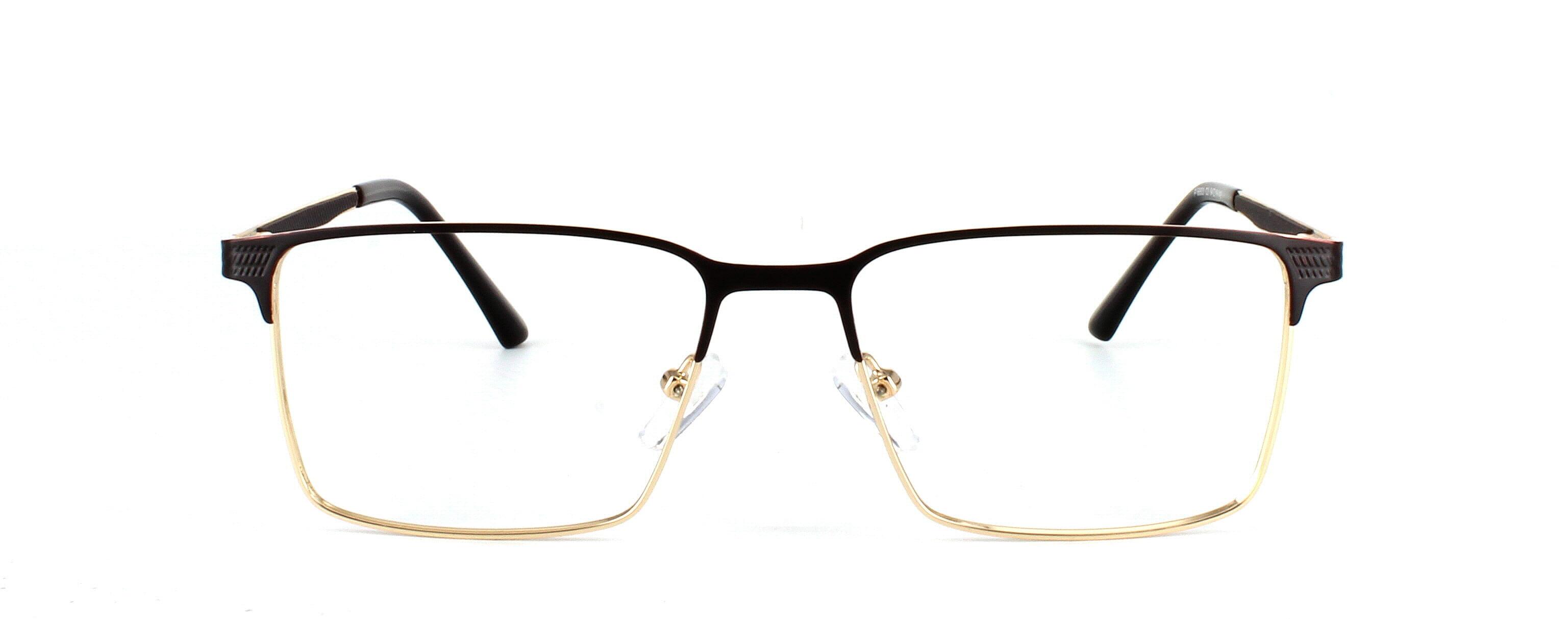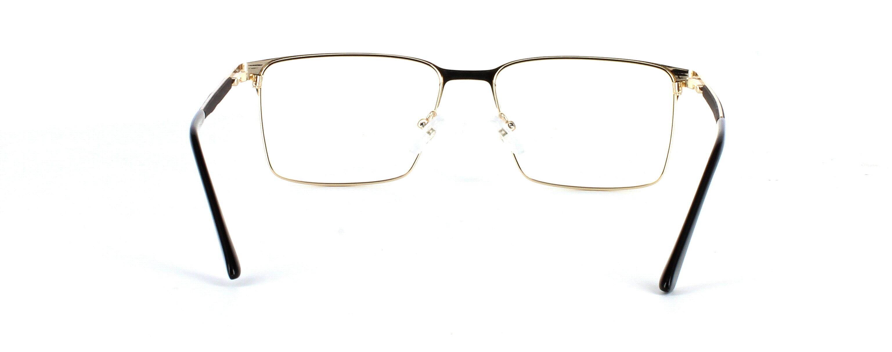 Belfry is a gent's full-rim rectangular-shaped metal glasses frame here presented in black and gold.