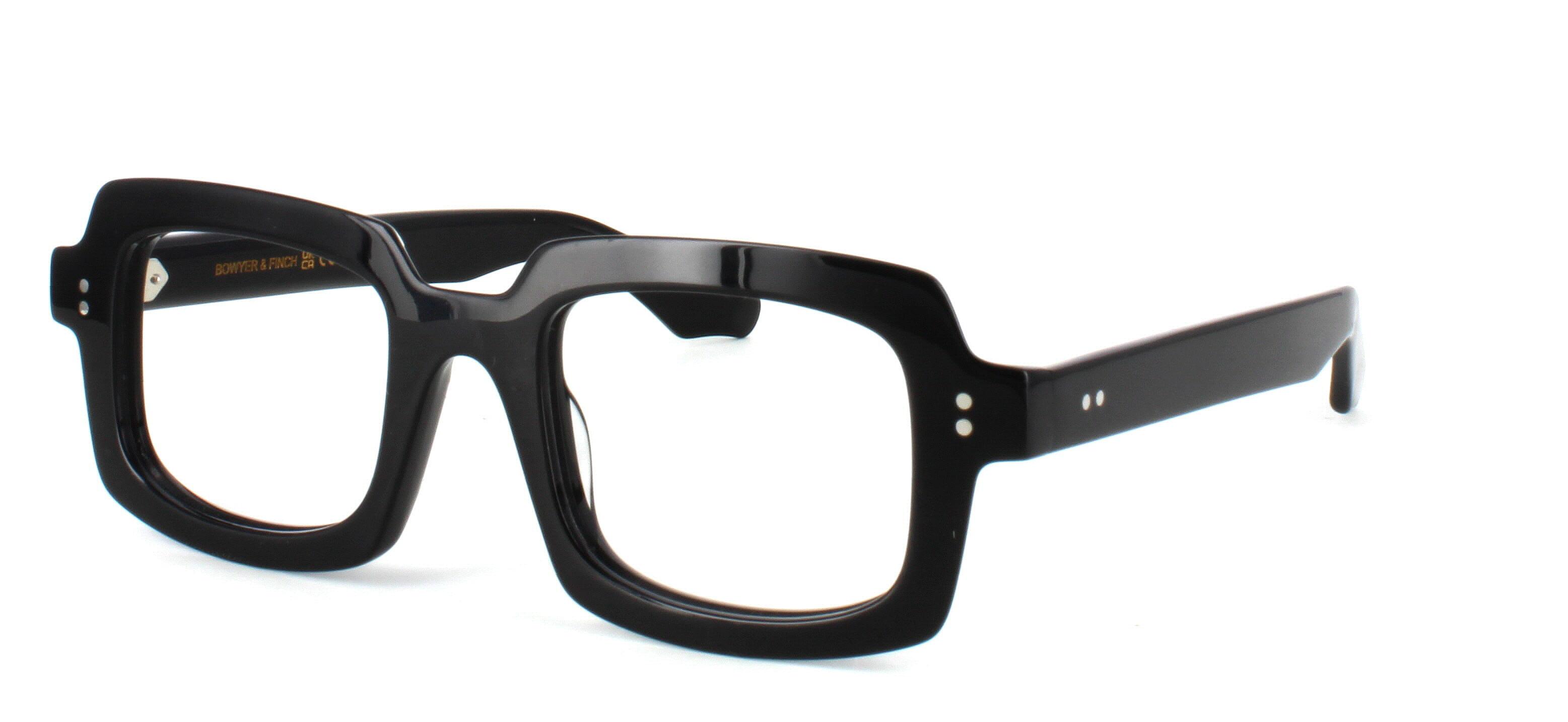 Make a bold statement with the Bowyer & Finch Caesar, a distinctive pair of handcrafted eyeglasses designed for those who embrace confident style. Featuring a chunky rectangular frame in a high-gloss black acetate, these glasses perfectly balance vintage charm with modern sophistication.