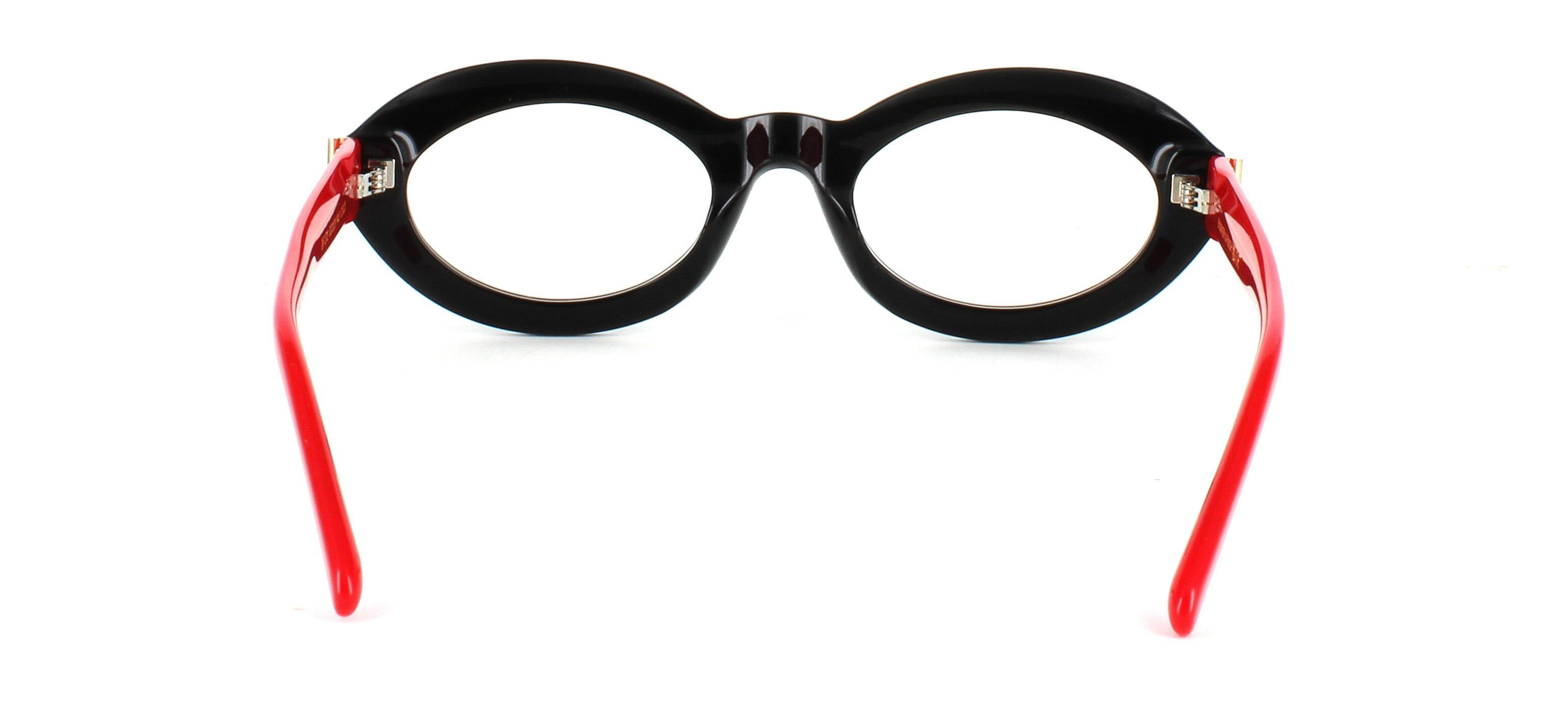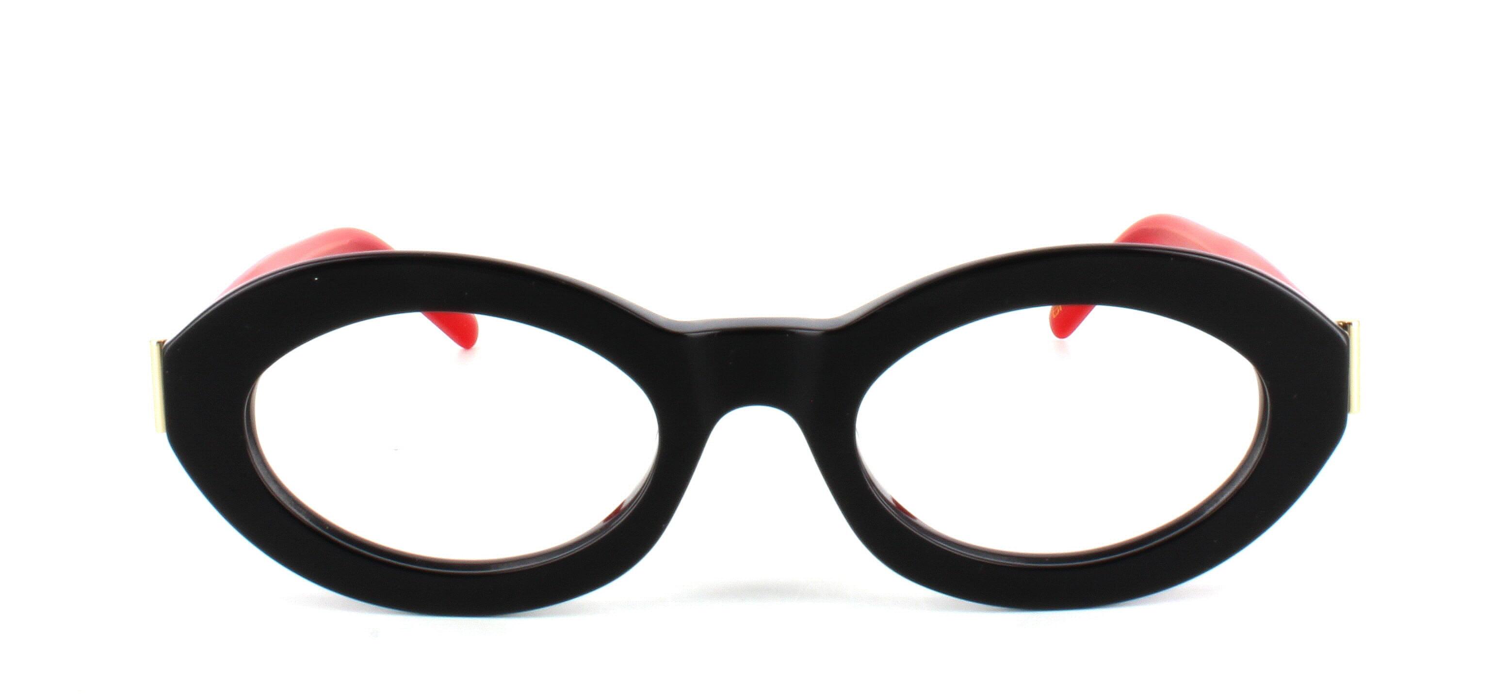 Crafted from premium black acetate, the Magnus combines durability with high-fashion appeal. The gold metal temple accents add a luxurious touch, balancing its avant-garde shape with timeless sophistication. Ideal for artists, trendsetters, and confident personalities, these glasses turn every look into a work of art.