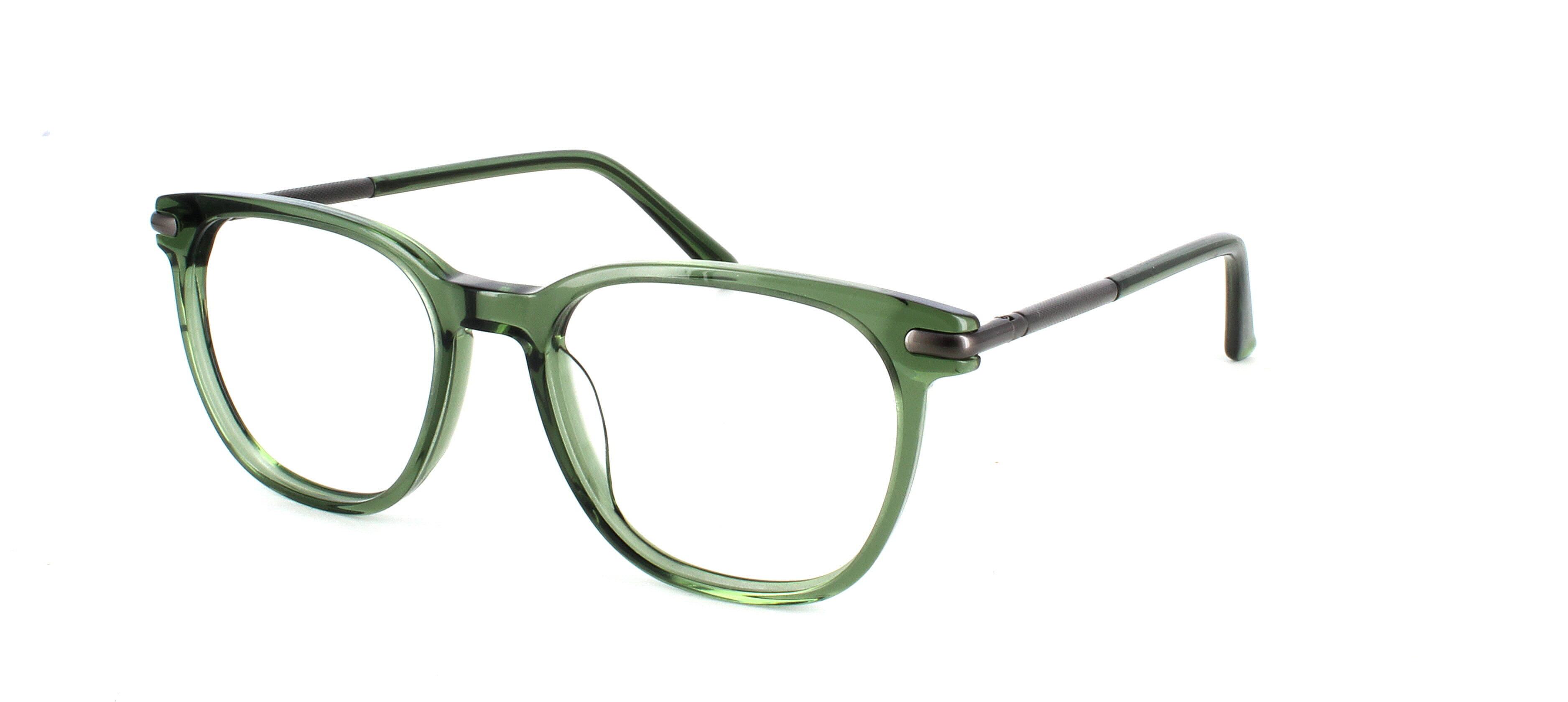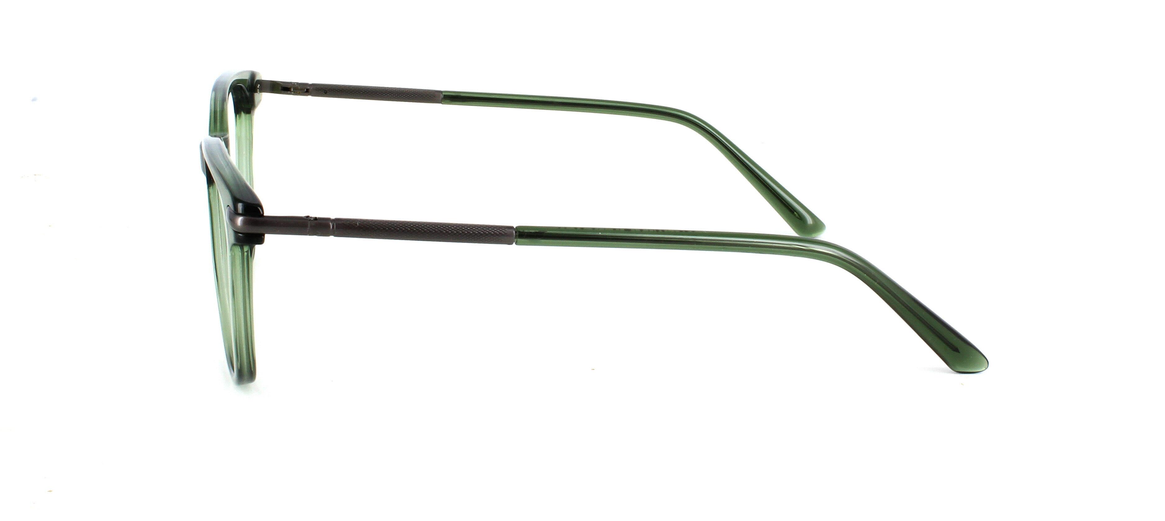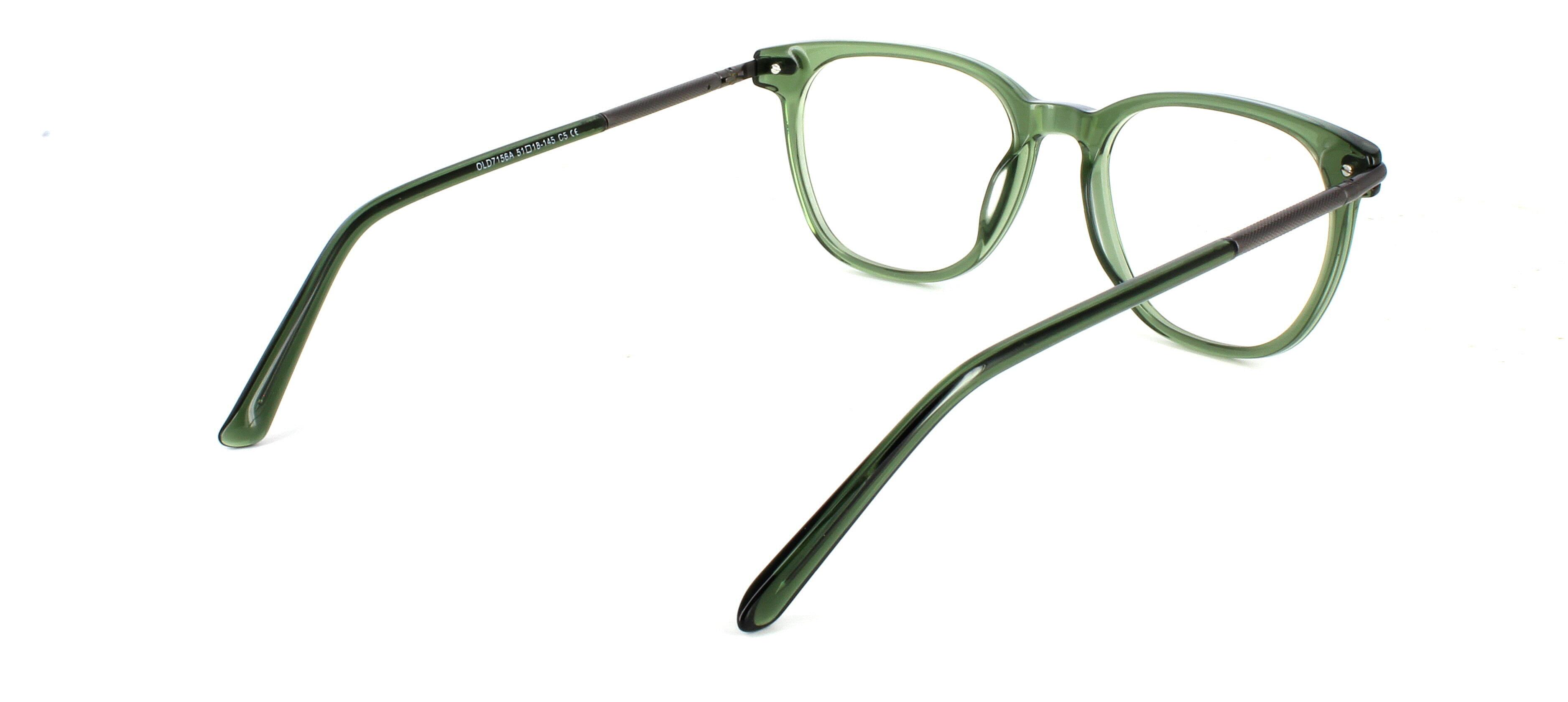 Smooth women's acetate round shaped frame in crystal olive green. Metal and acetate arms with durable sprung hinged temples.