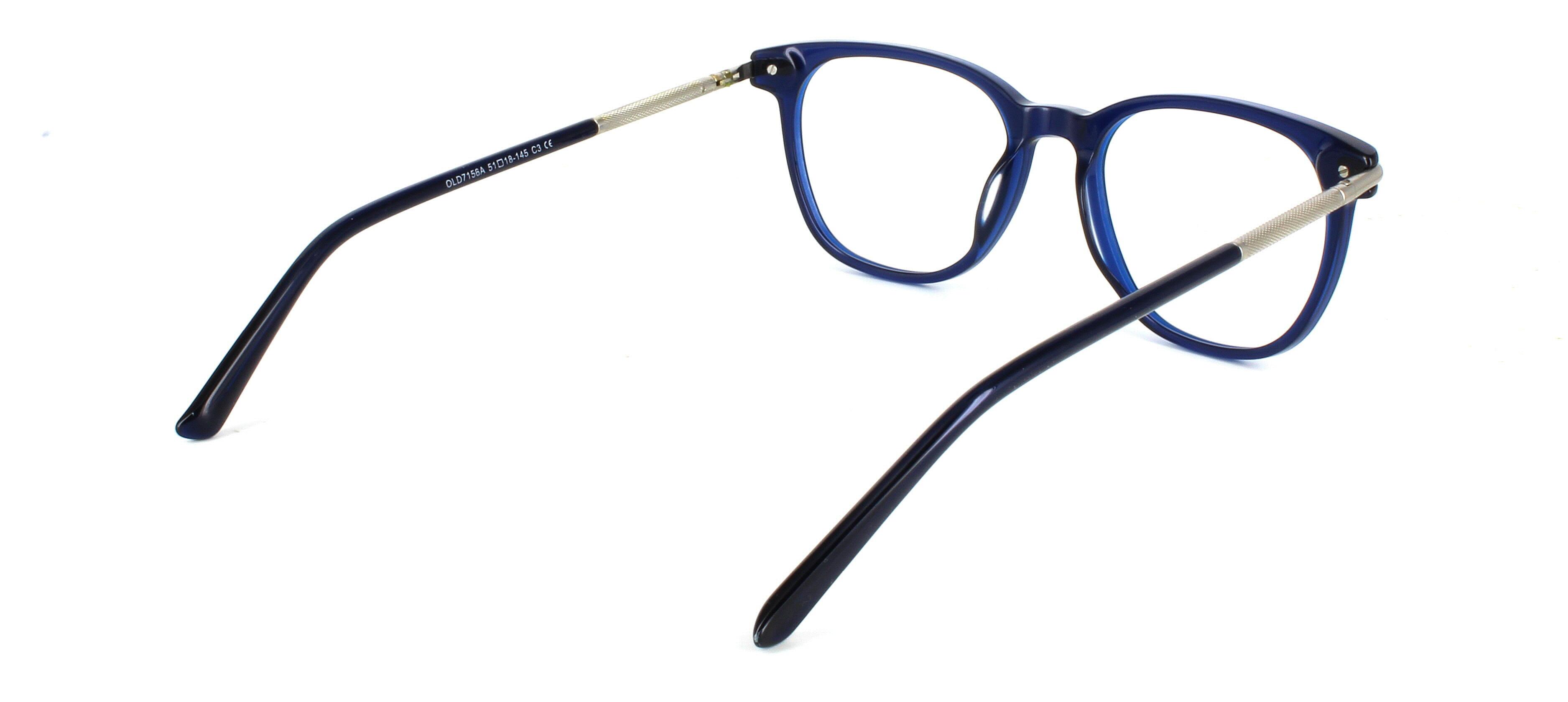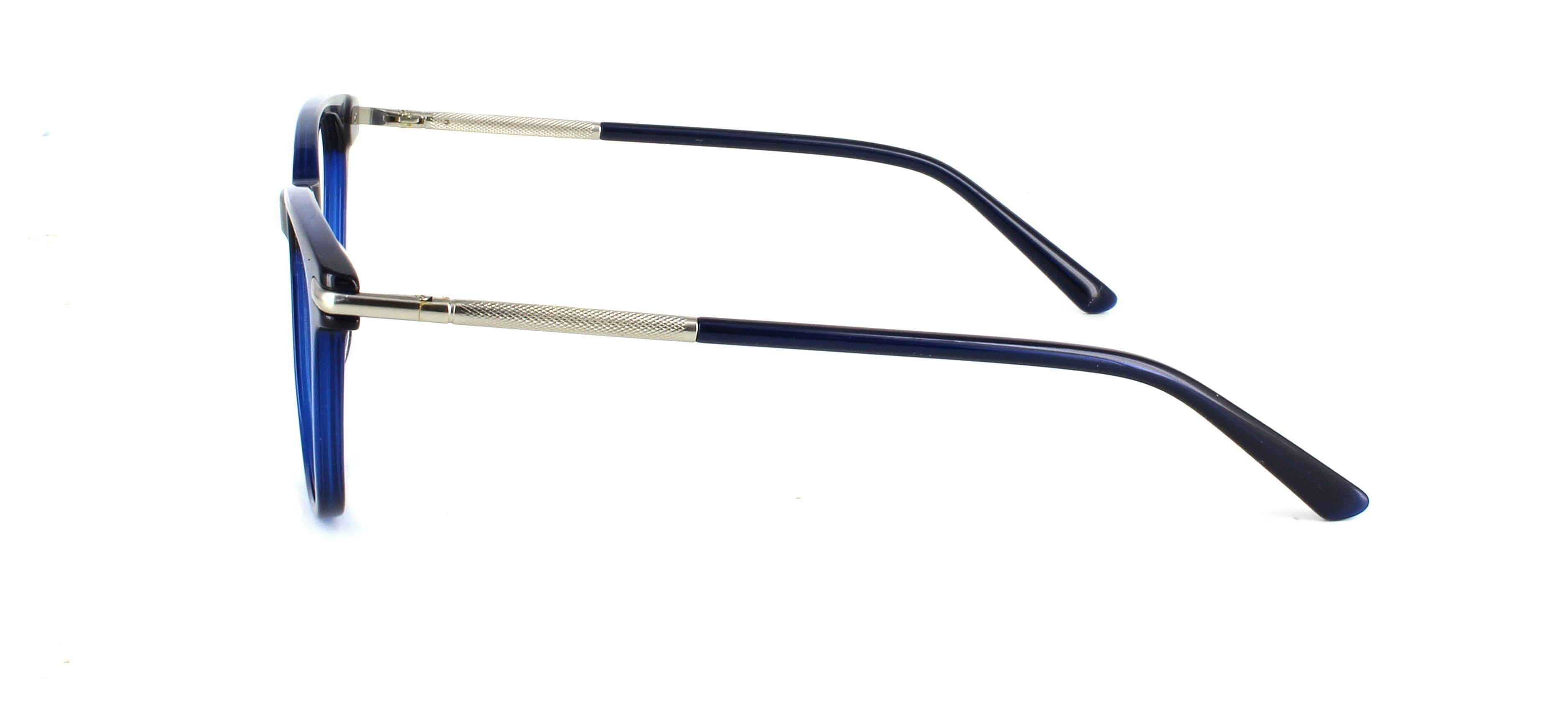 Smooth women's acetate round shaped frame in royal blue. Metal and acetate arms with durable sprung hinged temples.