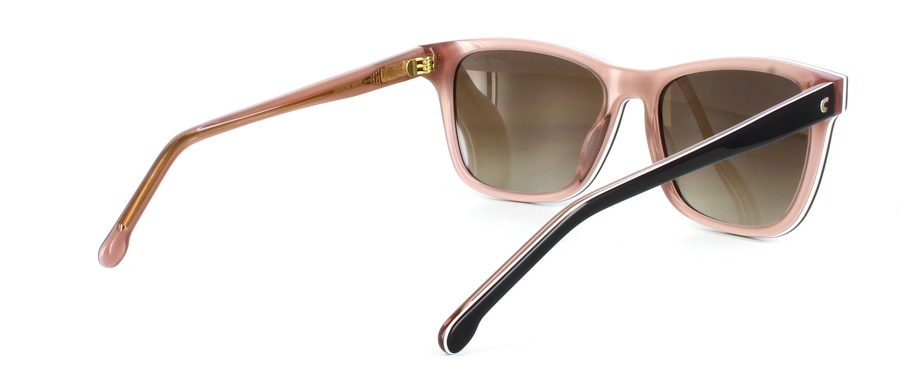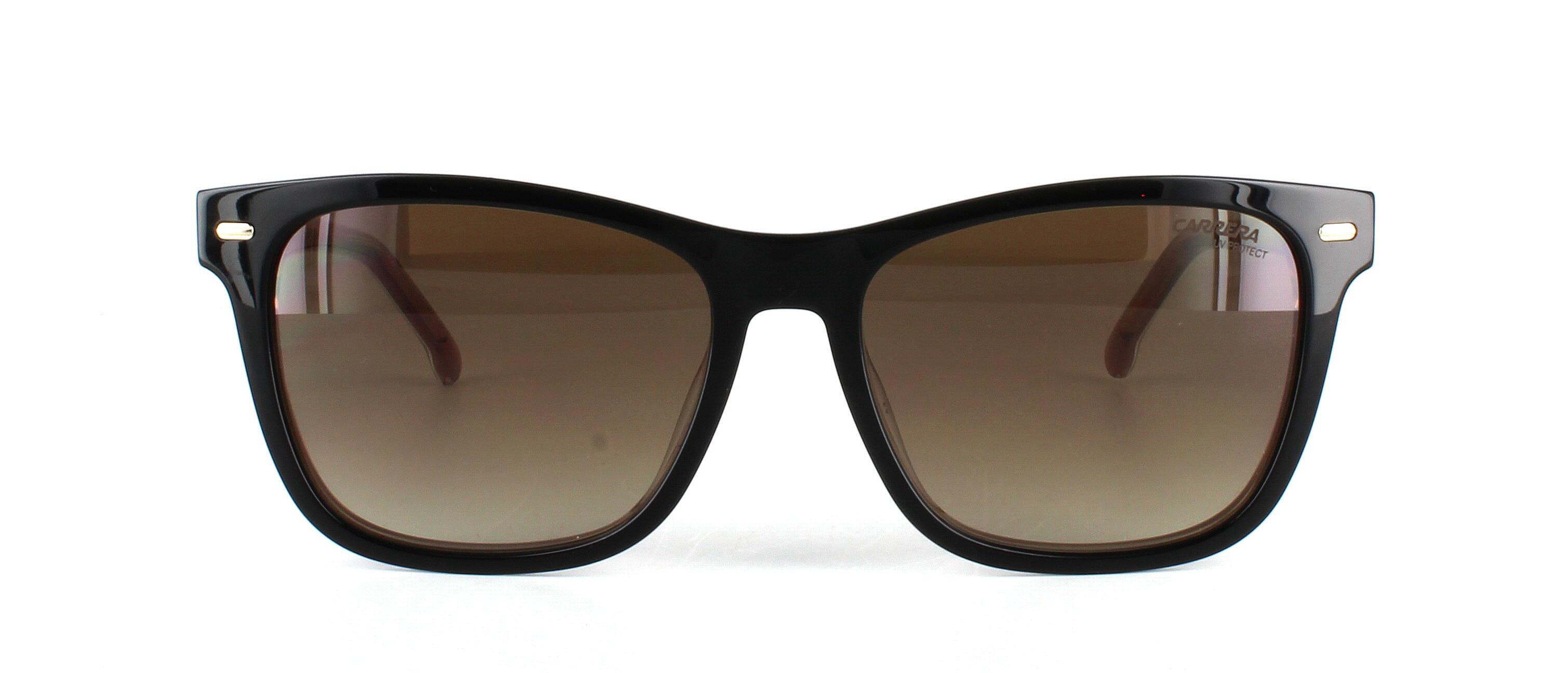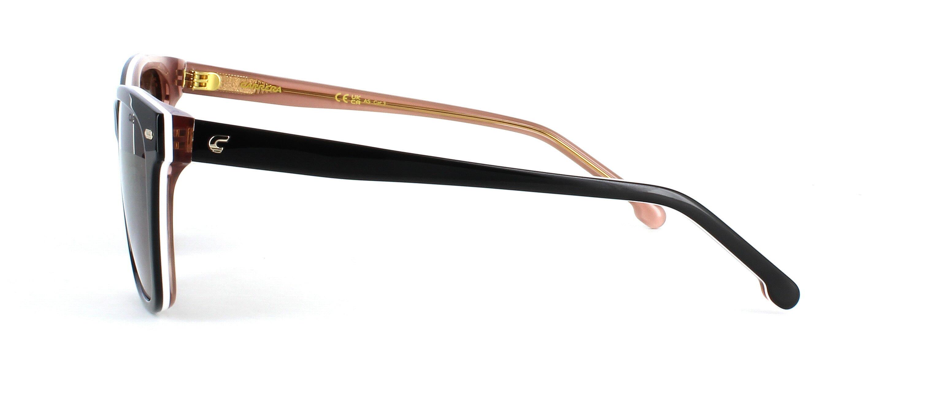 Make way for femininity. Standard elements from the world of Carrera stand out on these women’s prescription sunglasses. The acetate body is trimmed by an embossed Carrera ‘C’ on the temples and metal rivets on the front. These gorgeous sunglasses have a black front face with white inlay and nude reverse and quality barrel hinges.