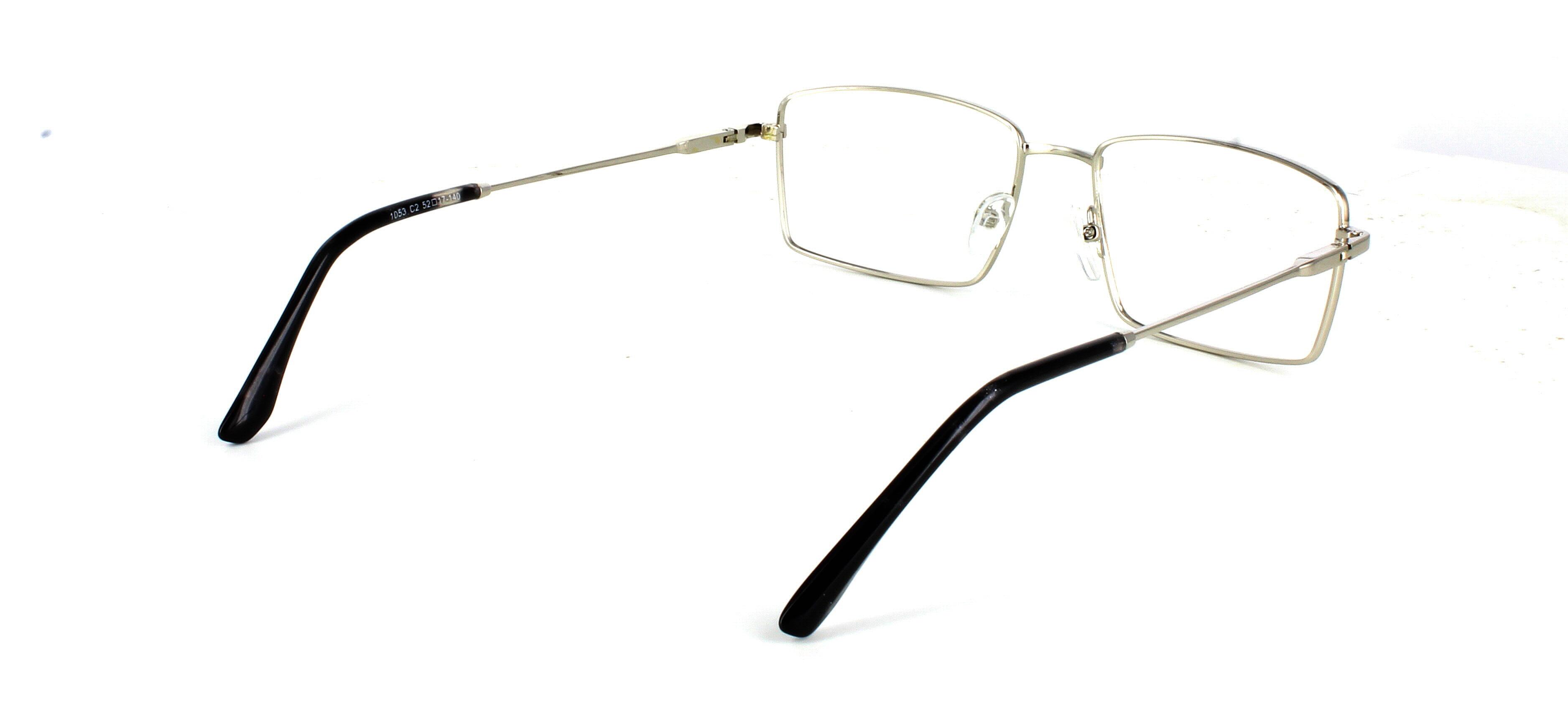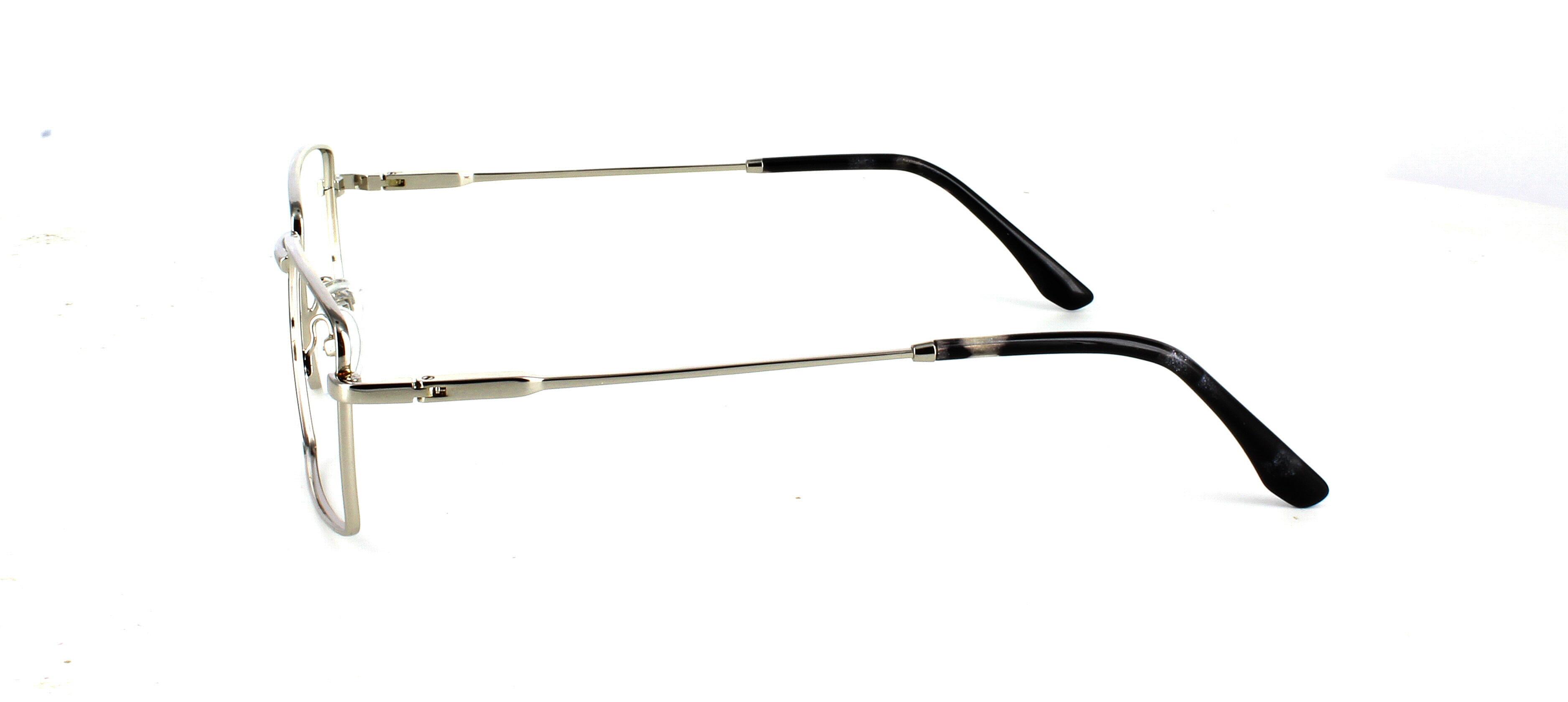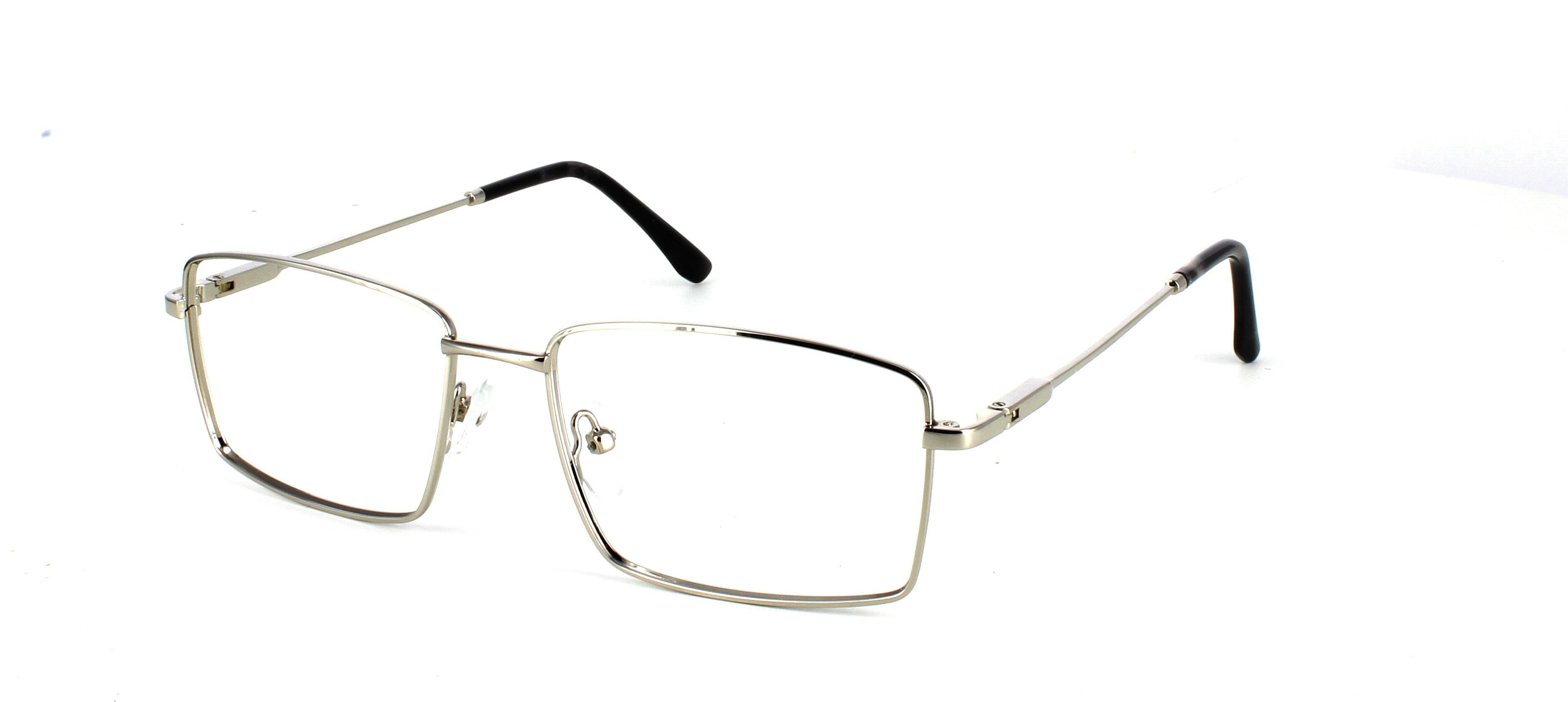 Catan, here presented in shiny silver is a rectangular-shaped gents metal frame with shiny black acetate tips. These frames have a sprung hinge temple for added comfort and durability, making them so comfortable you won't even know you have them on!
