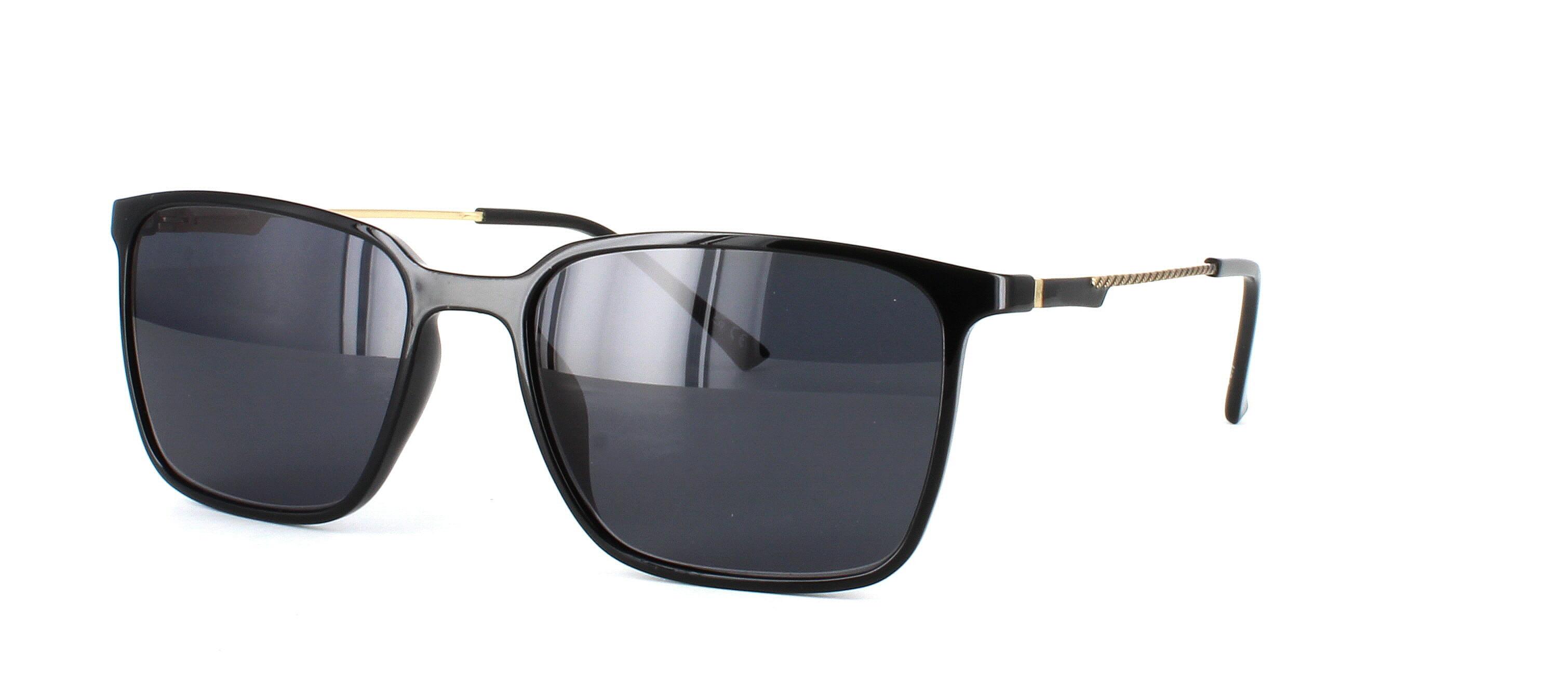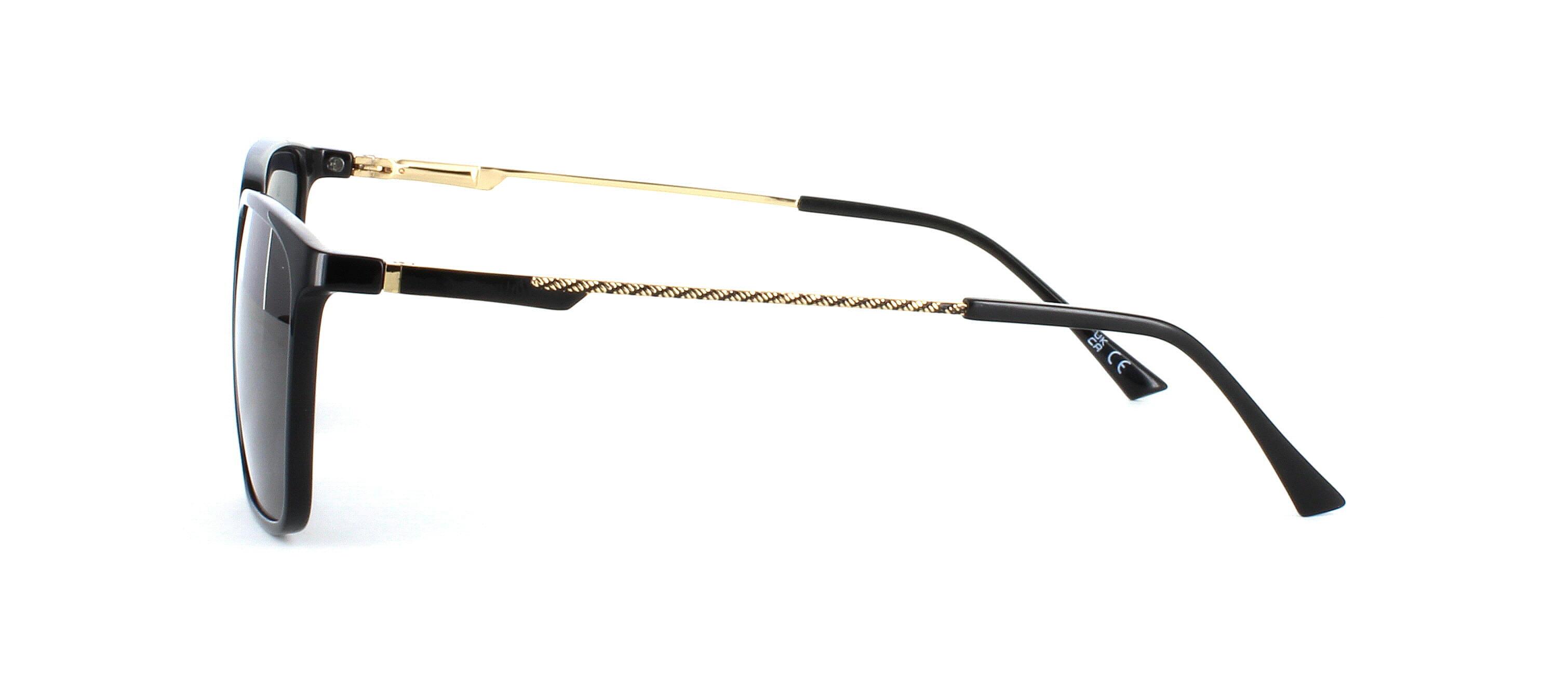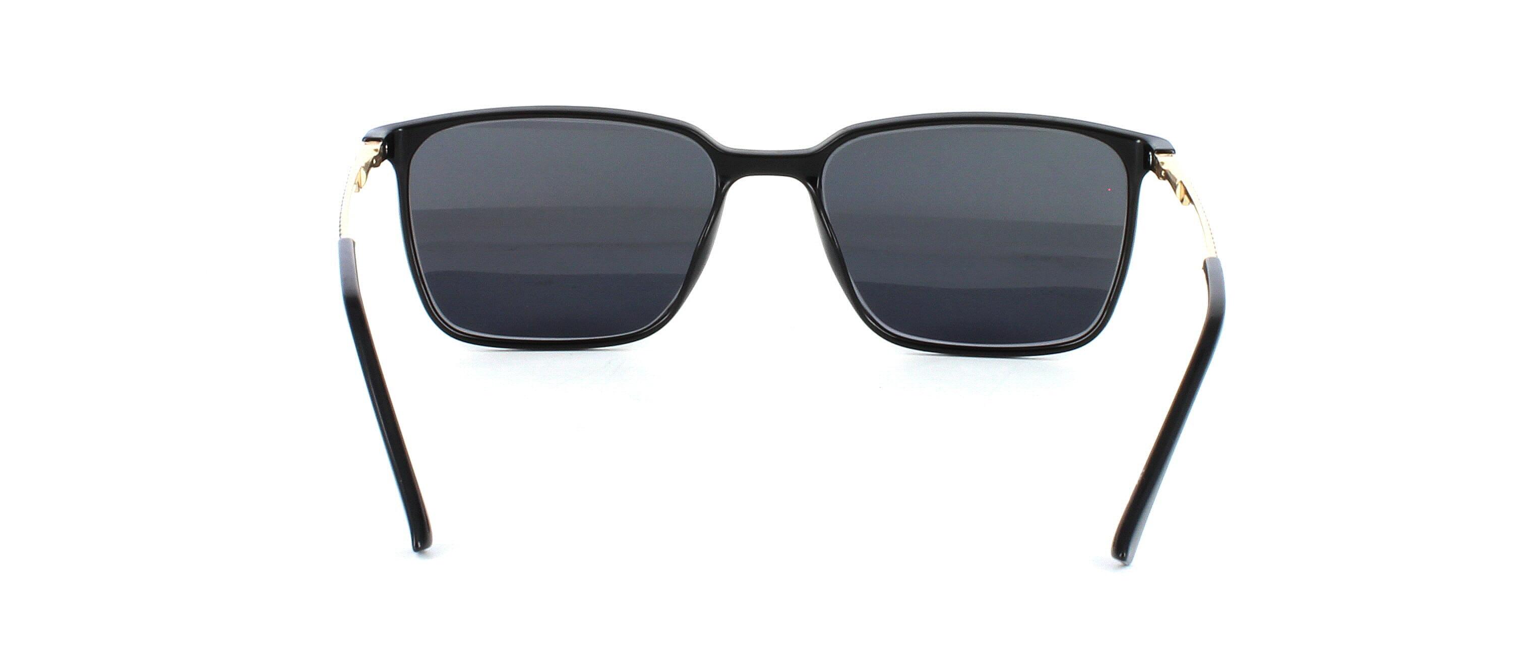 Metal black and gold sprung hinge arms with black acetate ear tips.