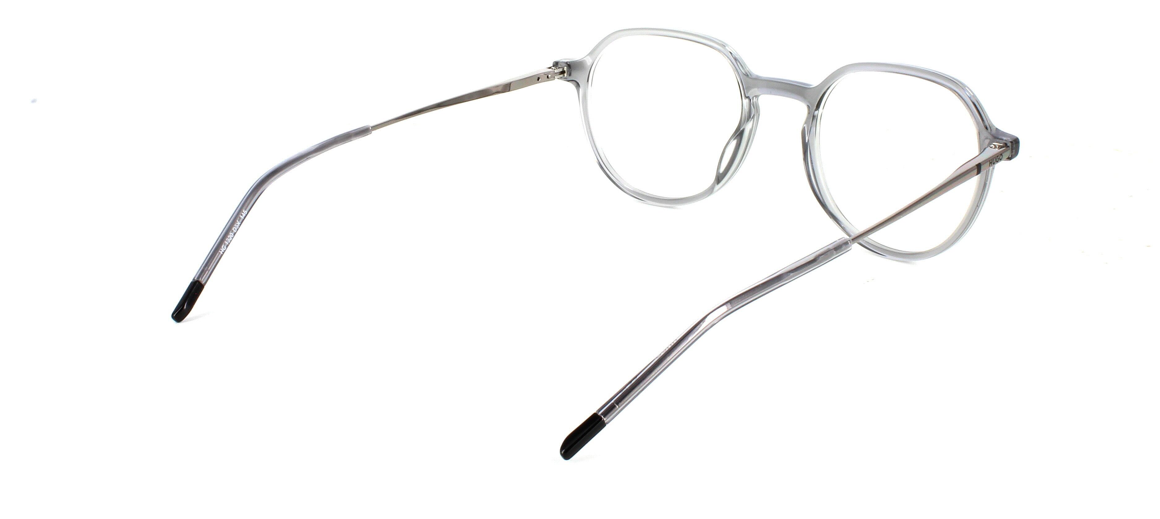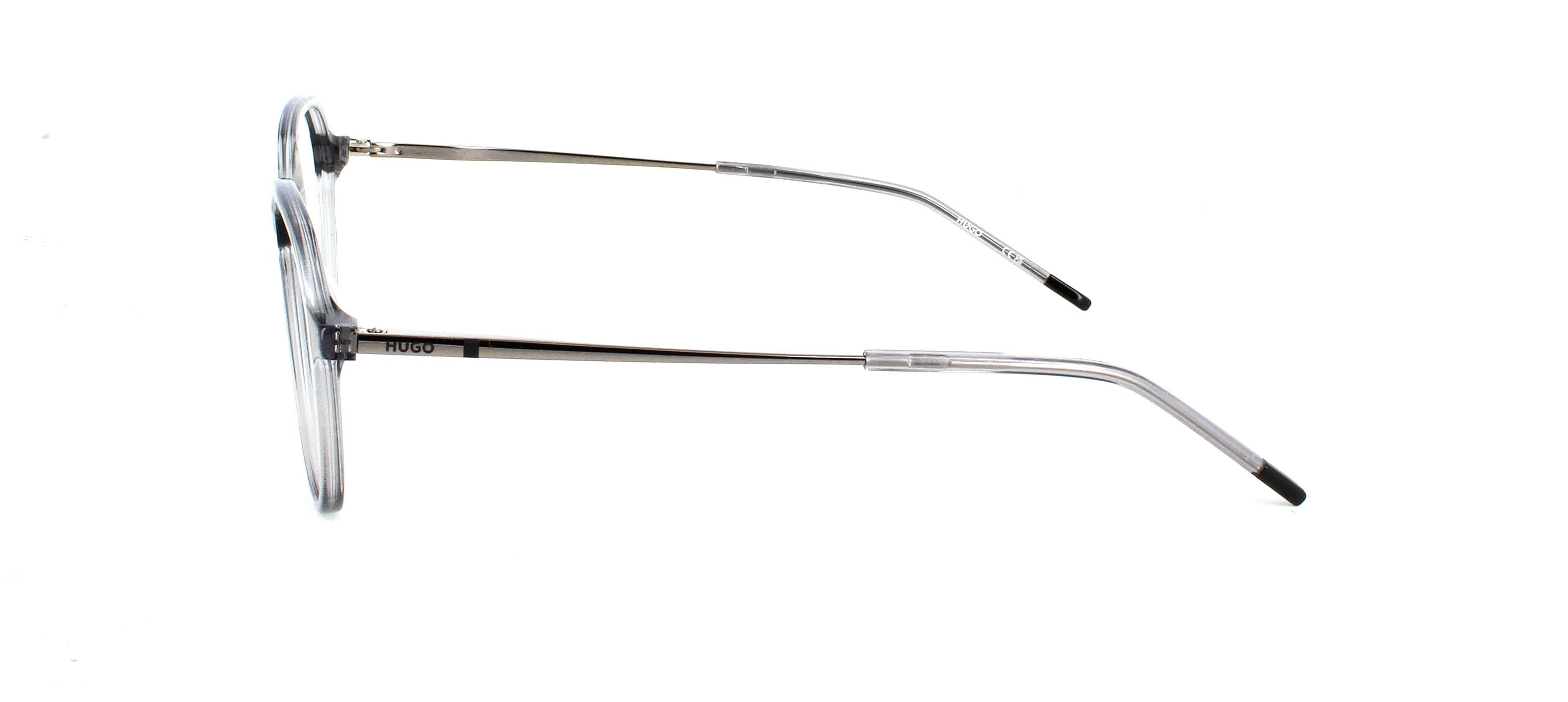 The softly rounded lens shape creates a balanced, intellectual look, while the transparent finish keeps the design fresh and versatile. Subtle Hugo branding on the temples completes the frame with understated designer appeal.