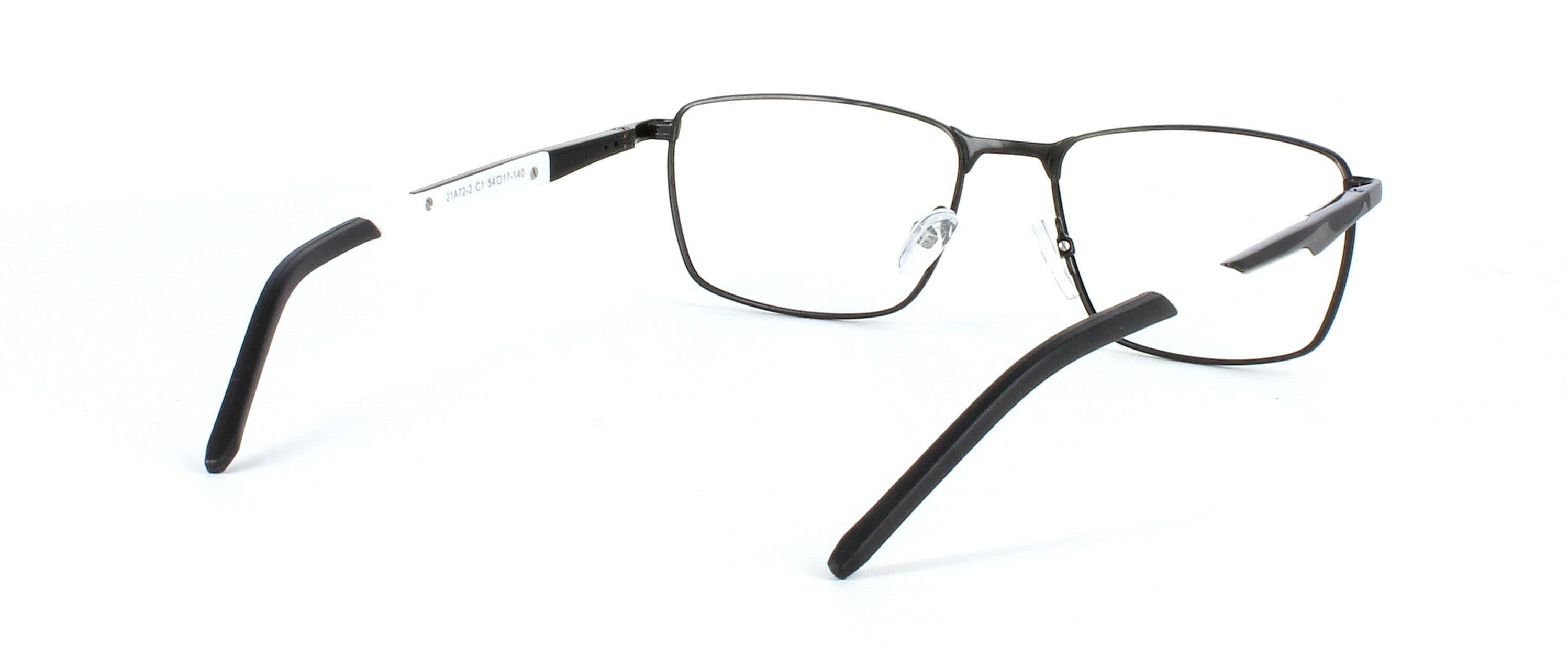 Millsy is a gent's full-rim rectangular-shaped metal glasses frame here in black with white detailing.