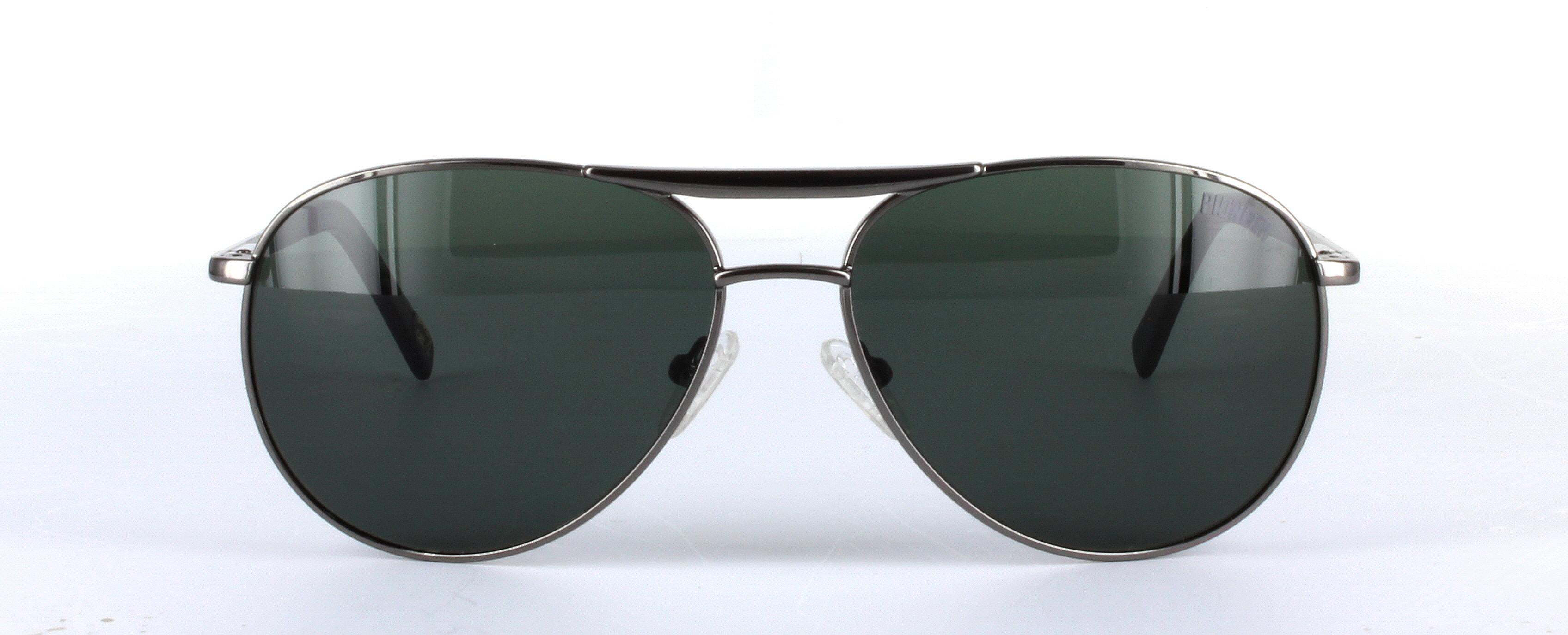Beautifully designed classic aviator-style frame in gunmetal. These sunglasses feature sprung hinge temples for added comfort. A true classic aviator-style frame.