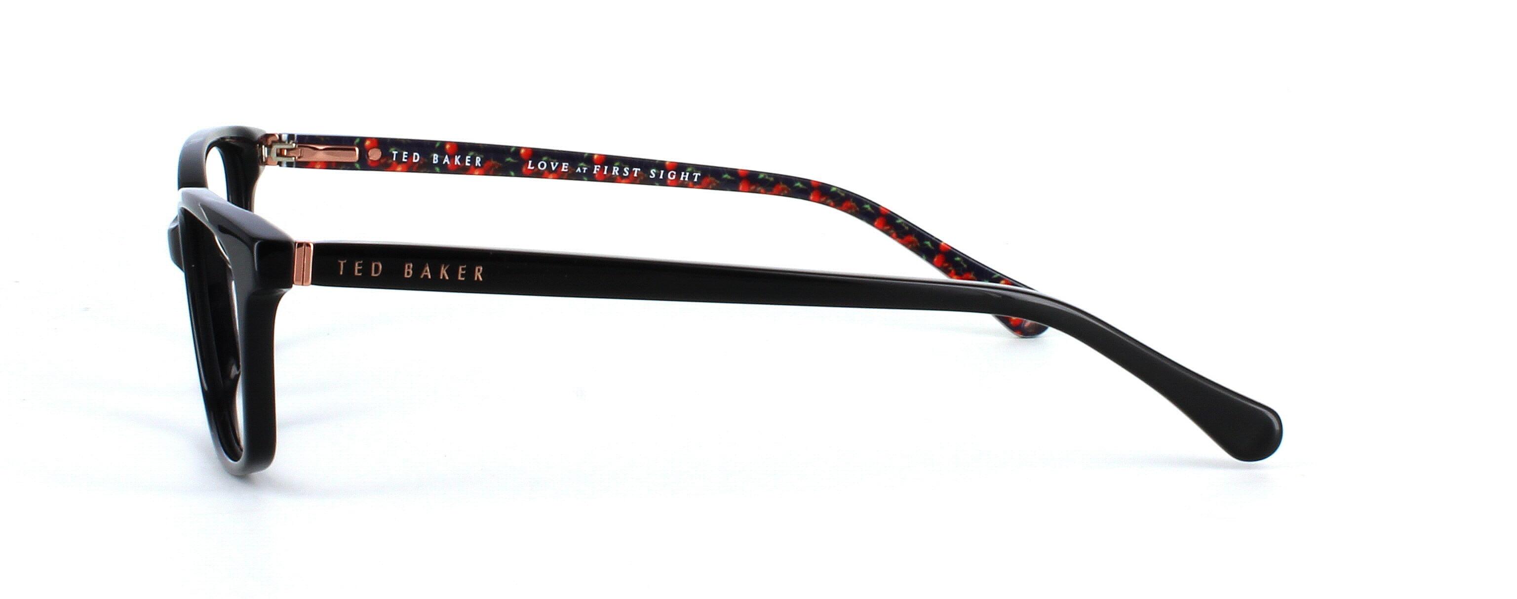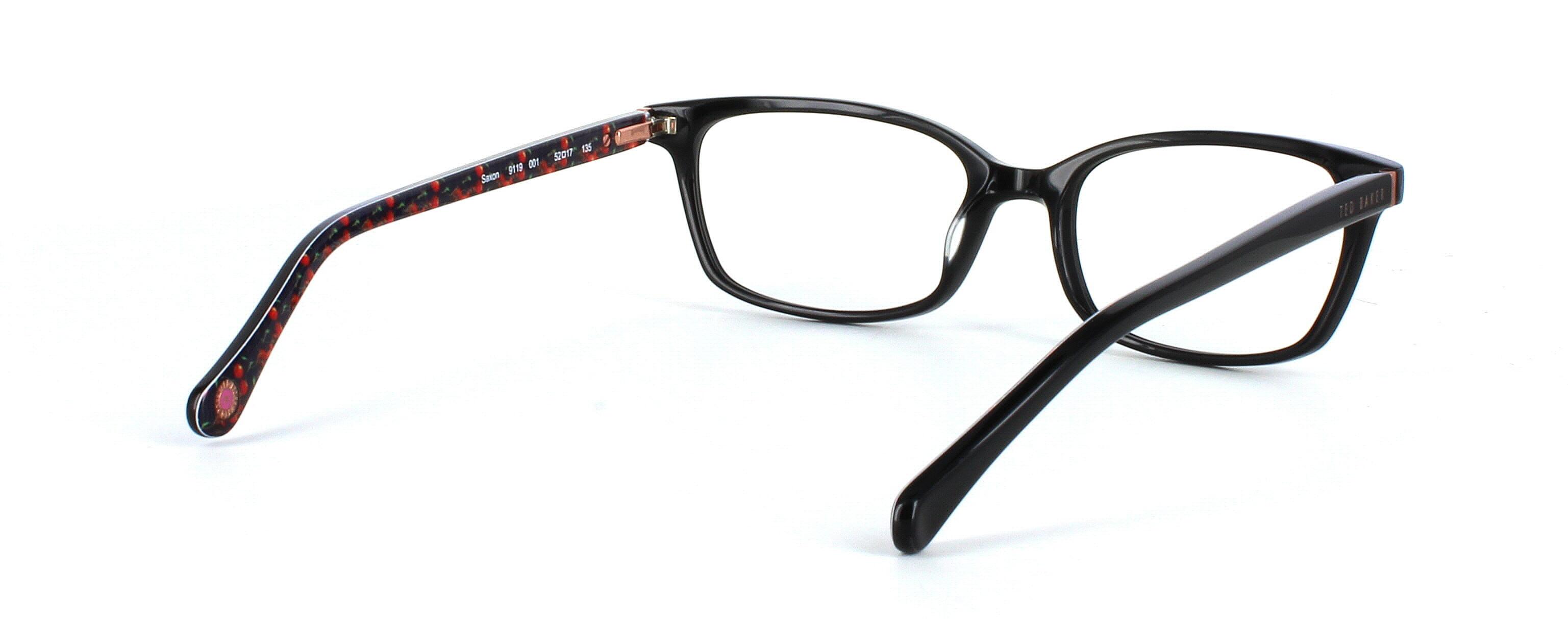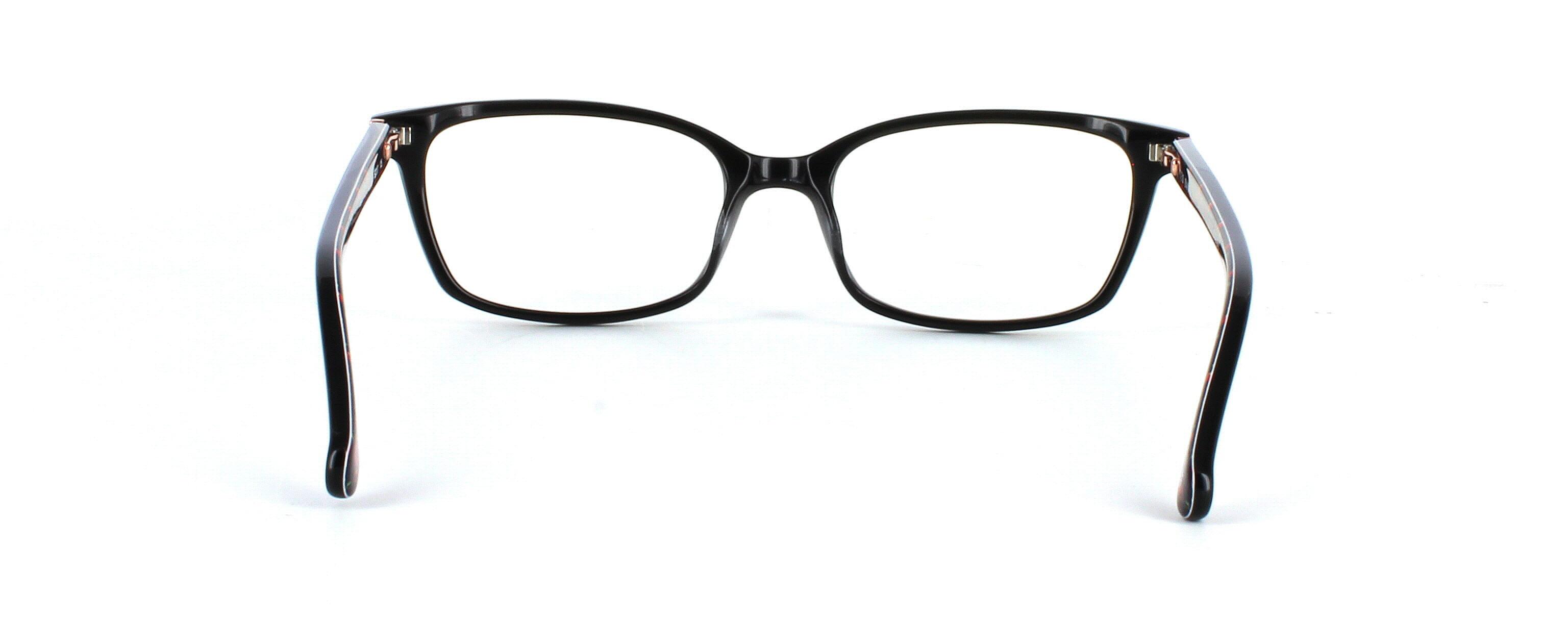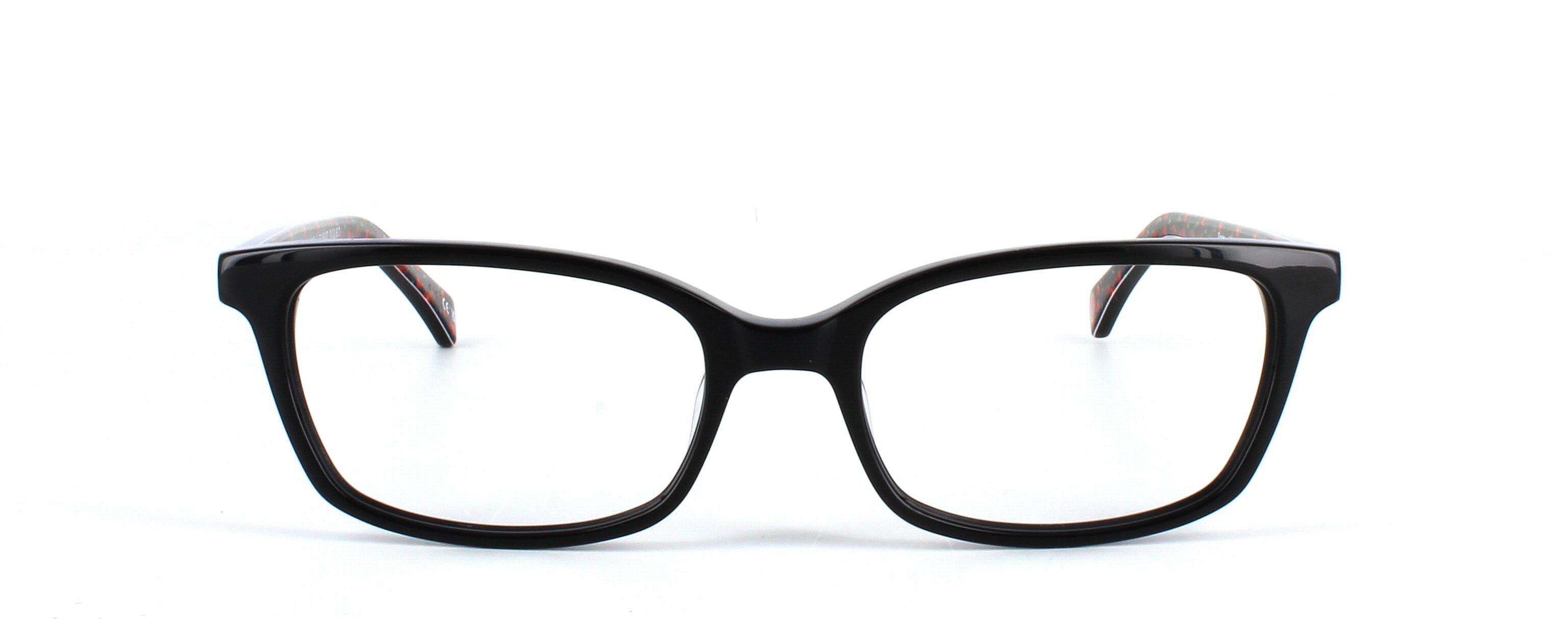 Ladies full-rim black acetate with tortoiseshell arms and rectangular shaped lenses.