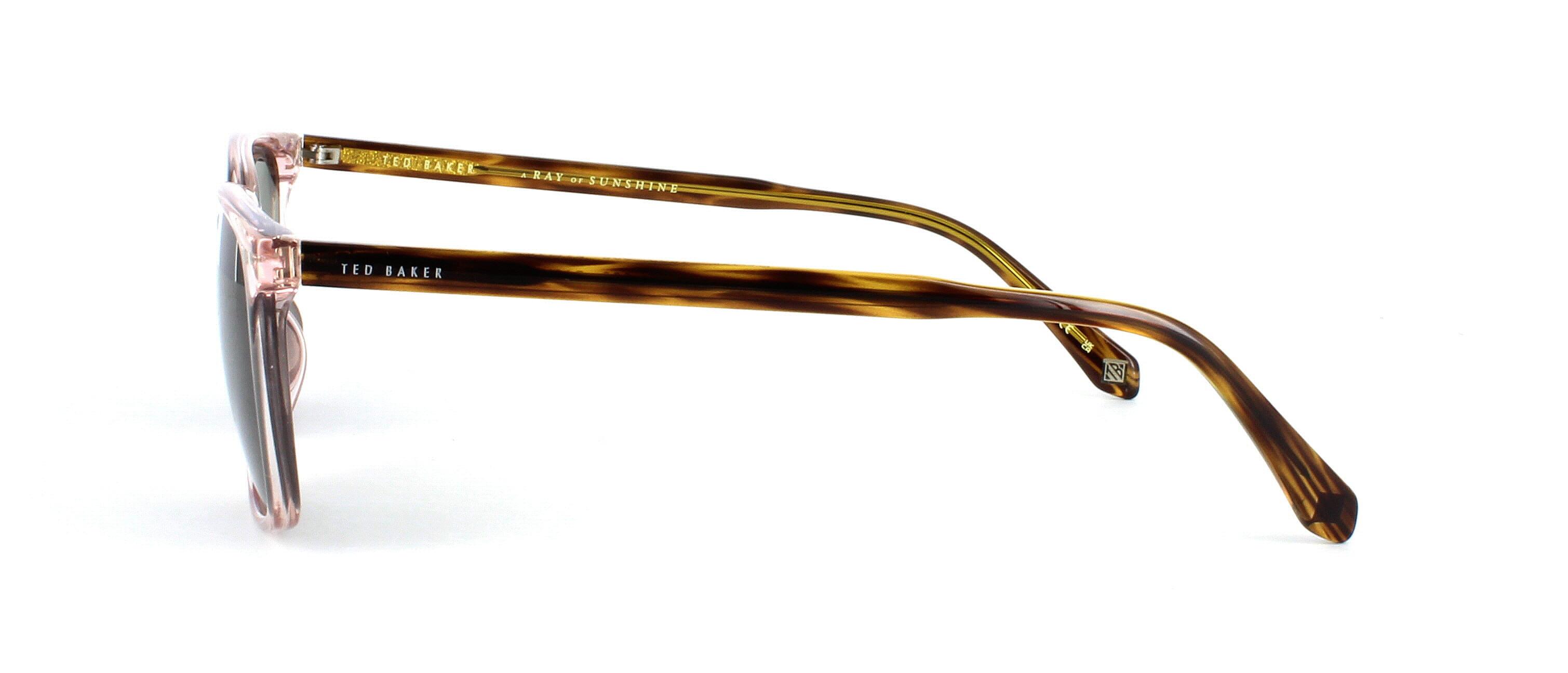 Here presented in crystal blush is a very classy unisex acetate sunglasses frame with high quality barrel hinges connecting the front face to smooth shiny tortoise acetate arms with the ted Baker logo at the temples.