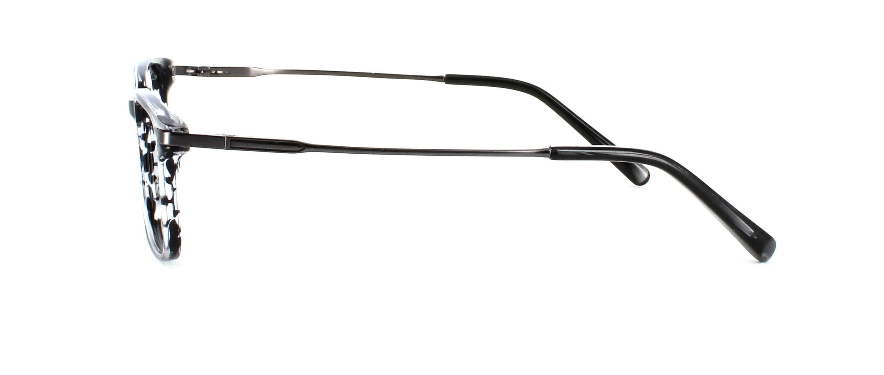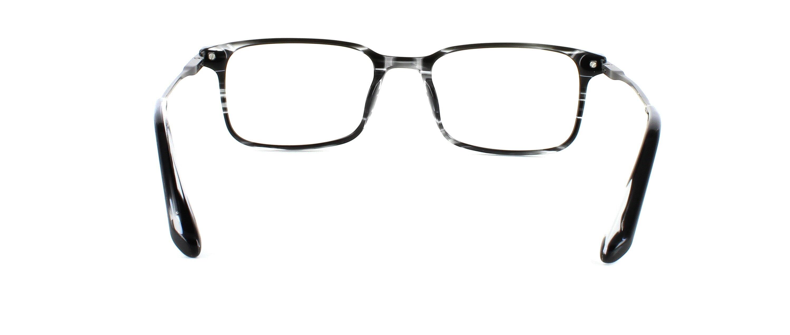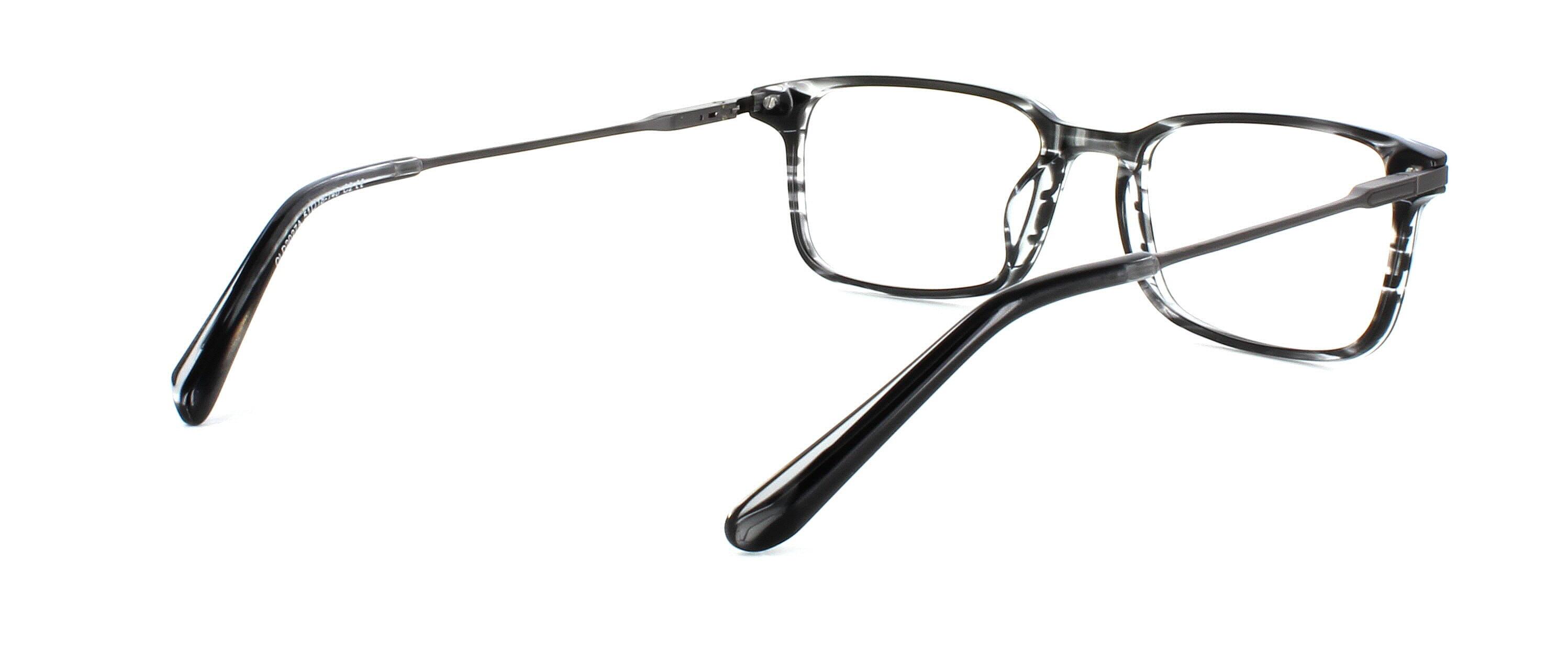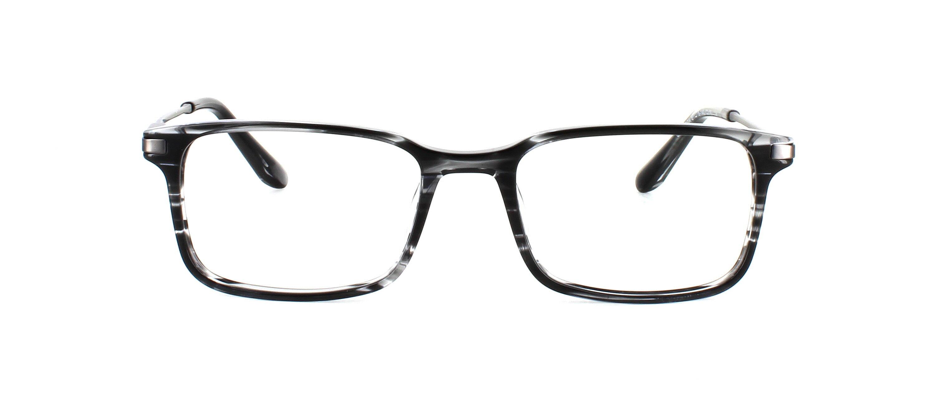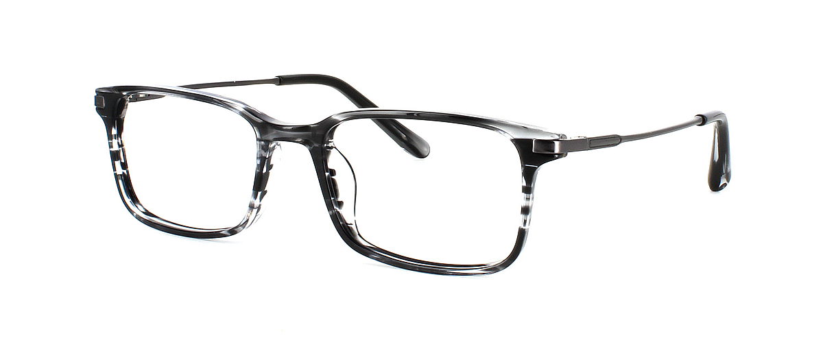Unisex acetate frame in grey stripe with rectangular shaped lenses. Metal sprung hinged gunmetal coloured arms for comfort and durability.