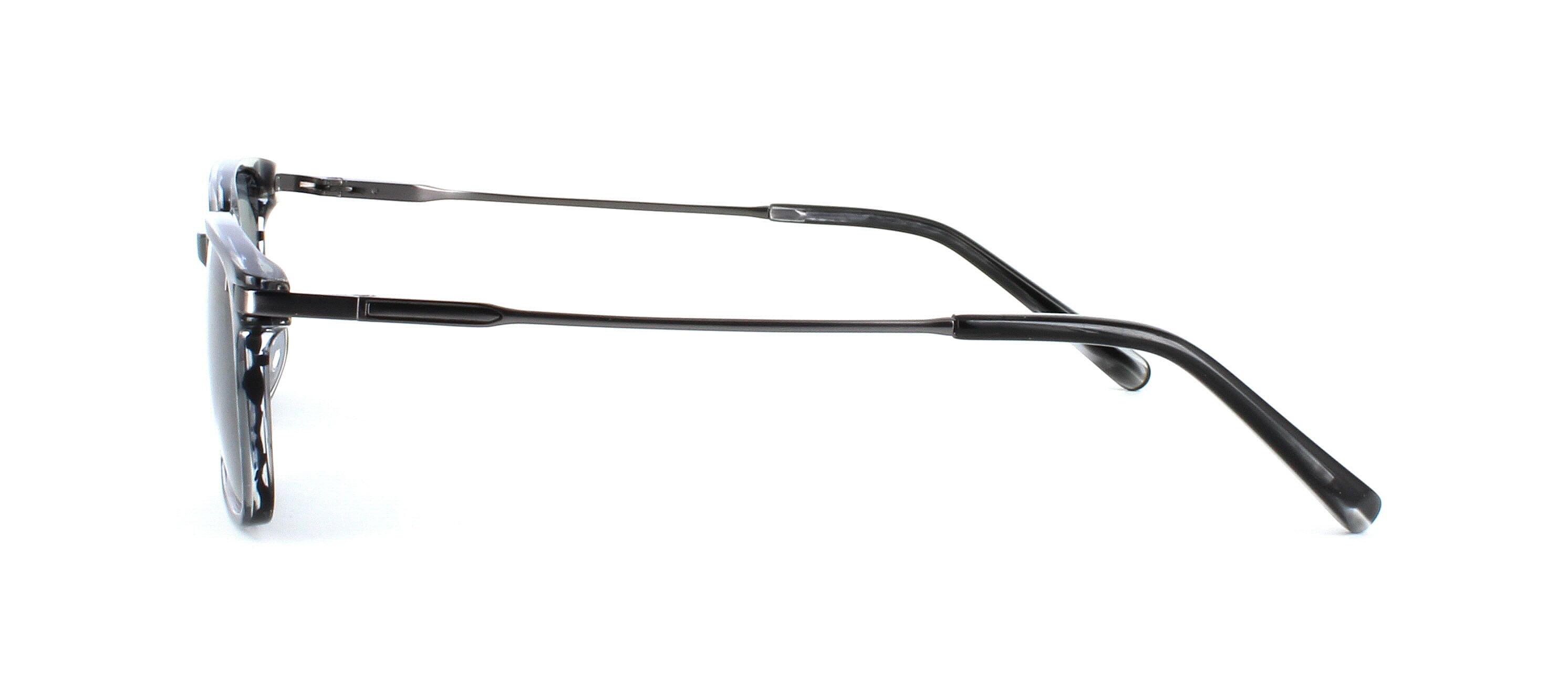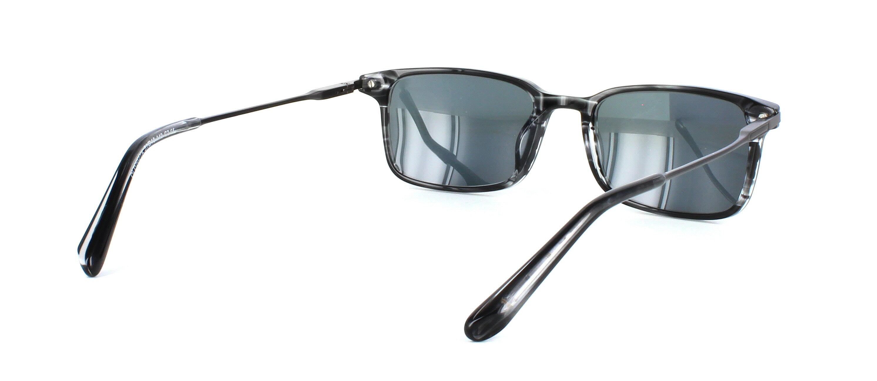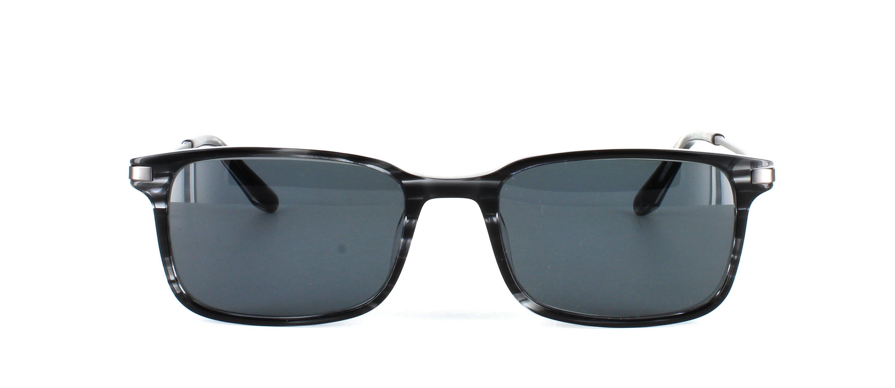 Unisex acetate frame in grey stripe with rectangular shaped lenses. Metal sprung hinged gunmetal coloured arms for comfort and durability.