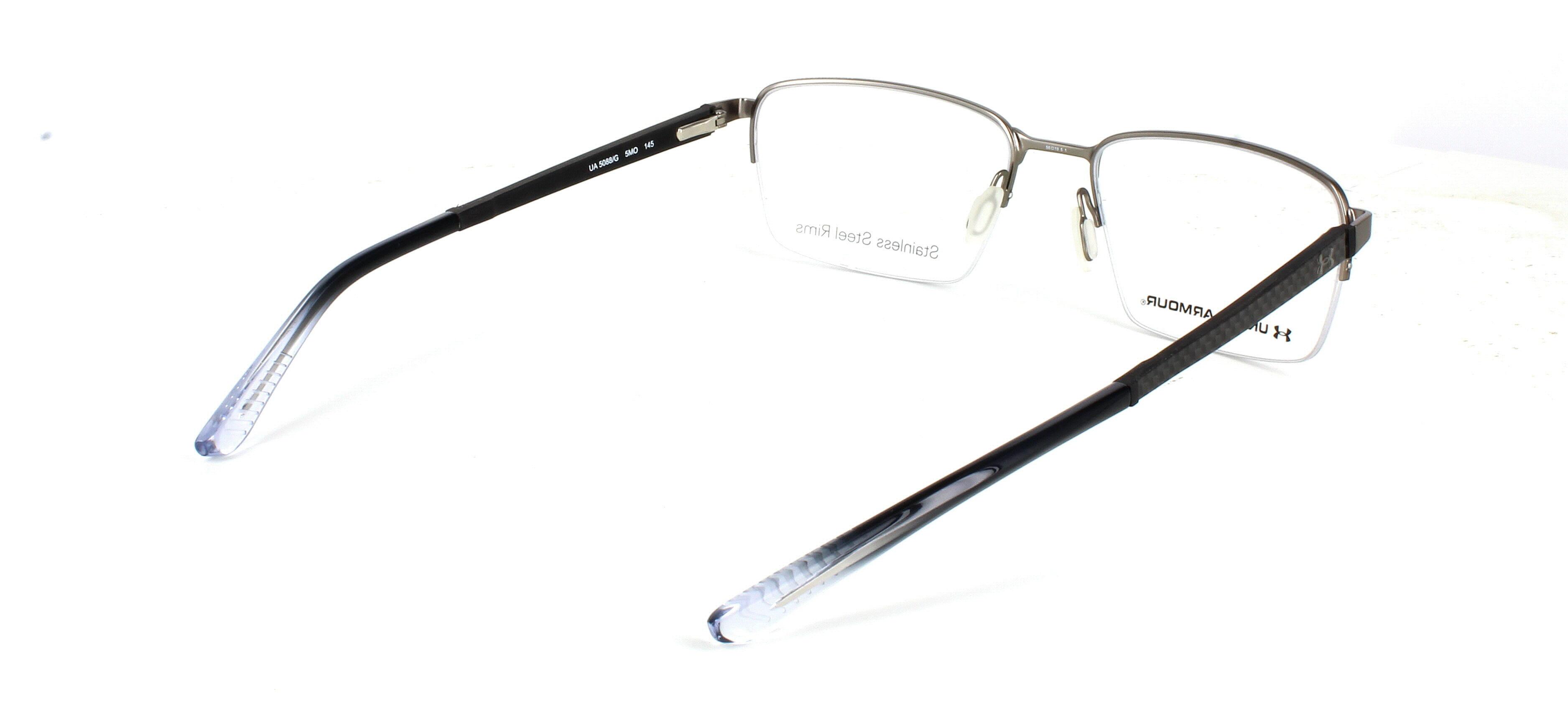 The Under Armour UA 5088/G 5MO prescription glasses combine athletic engineering with refined, everyday style. Designed with stainless steel rims and performance-inspired detailing, this semi-rimless rectangular frame offers durability, lightweight comfort, and a clean professional look.